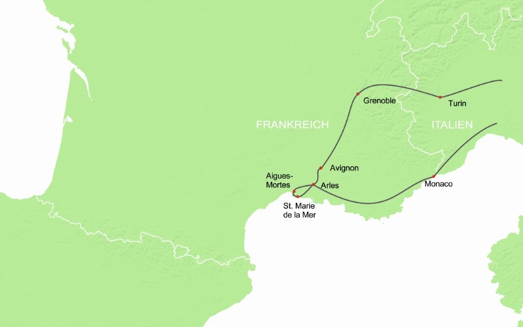 Zwischen majestätischen Alpengipfeln, weiten Sumpfl andschaften und der funkelnden Cote d’Azur – kaum eine Region Europas vereint jahrtausendealte Kultur, Geschichte und atemberaubende Natur so gut wie Südfrankreich. Mittelalterliche Städte, beeindruckende Relikte der Römerzeit und spektakuläre Landschaften prägen diese faszinierende Gegend. Außerdem erwartet uns das legendäre Reiseziel der Reichen und Schönen – das Fürstentum Monaco.